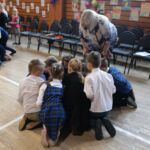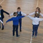 Saņēmuši pirmklasnieku medaļas, bērni kopā ar Pavasara rūķīti gāja rotaļās un mielojās ar skolas direktores Ilzes Verginas sūtītajiem svētku kliņģeriem.