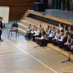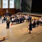 “Simtā diena skolā – tas patiešām ir lielisks sākums ikvienam no mums,” pirmklasniekus, viņu audzinātājas un vecākus uzrunāja Smiltenes vidusskolas direktores vietniece skolas ēkā Rīgas ielā 16 c Inese Raiskuma. “Šie pirmie mēneši aizritējuši vienā steigā. Katra diena nesusi kaut ko jaunu… Pavasara rūķīte man jautāja: “Kā tas tā var būt, ka viņi izaug lieli un 12.klasē jau prot visu?” – Tas notiek mūsu acu priekšā! Gluži kā upe, kura pa ceļam paņemot sev līdzi mazos strautiņus, cēla, liela un skaista ieplūst jūrā. Novēlu, lai arī jūs būtu kā upe, kas vienmēr traucas uz jūru, kur to gudrību ir vēl vairāk!”