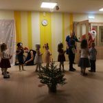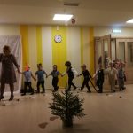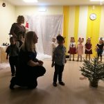 Smiltenes vidusskolas pirmsskolas grupiņas “Ezīši” audzēkņi kopā ar audzinātājām Ingu Štorhu un Santu Ķauķīti saviem vistuvākajiem skatītājiem Ziemassvētkos uzdāvināja pašu iestudētu latviešu tautas pasaku “Vecīša cimdiņš”.