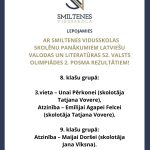 Lepojamies ar Smiltenes vidusskolas skolēnu panākumiem Latviešu valodas un literatūras 52. valsts olimpiādes 2. posma rezultātiem!