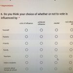 Aptauja notika angļu valodā. Tas skolēniem pirms eksāmeniem deva labu iespēju papildināt un nostiprināt angļu valodas vārdu krājumu par politiku un vēlēšanām.”