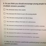 Jaunieši piedalīšanos minētajā aptaujā uzskatīja par lielu ieguvumu, jo tā viņus rosinājusi padomāt par būtiskiem jautājumiem, kuriem ikdienas steigā nepievērš vajadzīgo uzmanību,” stāsta skolotāja Gundega Upeniece. Tāpat skolotāju priecē, ka pēc aptaujas klasē izvērtusies spraiga diskusija gan par Eiropas Parlamentu un tā misiju, gan tās nozīmi Eiropas nākotnē. “Vairāki jaunieši atzina, ka līdz šim nezinājuši, cik deputātu EP vēlēšanās jāievēl no Latvijas, un kas ikvienam jāņem vērā, lai izmantotu balsošanas iespējas.