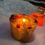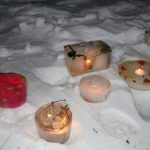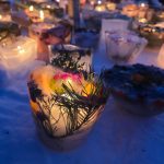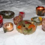 Ledus svecītēs vizuļo ogas, sūnas un koku zariņi, atgādinot par latvieša saikni ar dabu un mūsu senču gara spēku, dzīves gudrību, mūsu dziesmām, valodu, tradīcijām un dvēseles bagātību, kas turpinās bērnos un mazbērnos.