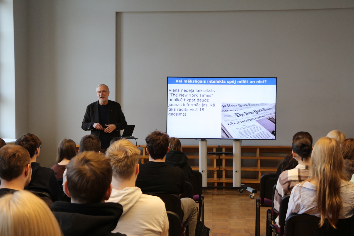 Profesors Mārcis Auziņš dalās pieredzē ar vidusskolēniem