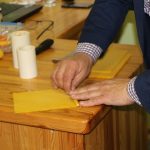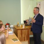 Pirmdien, 23. aprīlī, mūsu skolas 6. klašu skolēniem dabaszinību stundu vadīja biškopis Armands Gumbris. Maņas tika lutinātas un nodarbinātas pilnā mērā – vaska un medus smarža; ziedputekšņu un bišu maizes garša; biškopības inventāra tvēriens – dūmeklis, medus rāmītis, kaltiņš; biškopja apģērbs – sejsargs un jaka; vaska plāksnes, kuras nodarbības beigās pārtapa pašu tītās vaska svecēs un dzīvespriecīgais biškopis, kurš savu stāstu papildināja ar lielisku vizuālo materiālu – bišu stropu veidi (privātmājas un daudzdzīvokļu mājas), bišu selfijs, bišu uzdevumi stropā un ārpus tā (trani, bišu mātes, darba bites).