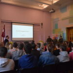 11.novembrī ar vidusskolēniem tikās Latvijas Republikas Aizsardzības ministrijas Stratēģijas un plānošanas nodaļas pārstāvis Roberts Alhimionoks un bruņoto spēku karavīri. Tikšanās mērķis – veicināt skolēnu izpratni par aizsardzības nozari un tās aktualitātēm. Viesi ar jauniešiem pārrunāja būtiskāko, kas nepieciešams, lai Latvija būtu droša valsts. Skolēni uzzināja daudz interesantu faktu par armiju, iepazinās ar galvenajiem drošības izaicinājumiem, NBS spējām un veidiem, kā arī pārrunāja zemessardzes lomu valsts aizsardzībā.