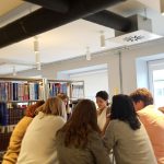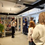 Skolotāja Iveta Krūmiņa un bibliotēkas vadītāja Inguna Kudlāne kolēģus iesaistīja izlaušanas spēlē. Lai tiktu ekskursijā pa skolu, ciemiņiem vajadzēja izlauzties no bibliotēkas.