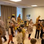 “Bitīšu grupiņa februāra mēnesī iepazina dažādus dzīvniekus. Tika iepazīti gan dzīvnieki, kas dzīvo mežā, gan mājdzīvnieki. Bērni izveidoja paši savu lauku sētas iemītnieku maketu, kuru turpmāk varēs izmantot mācību procesā. Tika noskaidrots, kā šie dzīvnieki izskatās, ko tie ēd, kur dzīvo un kā sauc to mazuļus. Bērni iepazīstināja cits citu arī ar savu mājas mīluli. Noskaidrojām, ka grupiņas bērnu populārākais mājdzīvnieks ir kaķis. Tika veidoti dažādi radošie darbi dzīvnieku tematikā. Bērni izrādīja vēlmi iepazīt tuvāk arī dzīvniekus, kas nedzīvo Latvijā. Īpaši interesanta likās žirafe, tādēļ arī par to kopīgi tika sacerēts dzejolītis ar kustībām. Noskaidrojām, ka žirafe ir pasaulē garākais dzīvnieks un, lai attēlotu tās garumu, kopā bija jāsaskaita piecu grupas bērnu garums. Noslēguma pasākumā visi attēlojām žirafes ar tērpu un radziņu vainadziņu palīdzību” – stāsta skolotājas Laura Buča un Marta Dreimane.