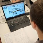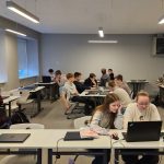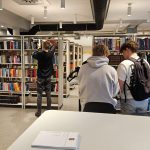 Desmitās klases skolēni matemātikas stundā veic pētījumu bibliotēkā