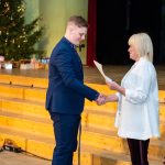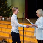 Turpat 50 otro līdz divpadsmito klašu skolēni pie Ziemassvētku eglītes saņēma zelta liecības un atzinības, bet vairāk nekā 100 skolēni par labām sekmēm pirmajā mācību pusgadā nopelnīja sudraba liecības.
