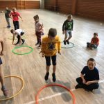 “Sākumskolas bērni Eiropas nedēļā savstarpēji sacentās trīs uzdevumos – t.s. apļa skrējienā, kurā klases laiku vērtēja pēc tā, cik ātri uzdevumu izdevās izpildīt pēdējam dalībniekam. Otrais uzdevums – izmantojot vingrošanas riņķi, bet trešajā bērni sacentās bumbiņu pārvietošanā. “Tas viss kopā atraisīja tik daudz pozitīvu emociju! Bērni ir laimīgi, ka atkal var kopā lēkt, skriet un spēlēties,” priecājas sporta skolotāja Laila Cīrule.