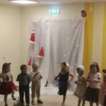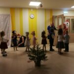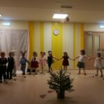 Smiltenes vidusskolas pirmsskolas grupiņas “Ezīši” audzēkņi kopā ar audzinātājām Ingu Štorhu un Santu Ķauķīti saviem vistuvākajiem skatītājiem Ziemassvētkos uzdāvināja pašu iestudētu latviešu tautas pasaku “Vecīša cimdiņš”.