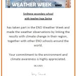 Sertifikāts par piedalīšanos globālā skolu tīklā ENO!