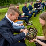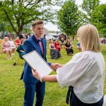 “Vajag priecāties un atrast iespējami vairāk lietu, kas sagādā prieku,” absolventiem vēlēja arī Latvijas Nacionālā teātra aktieri Dita Lūriņa un Mārtiņš Egliens. “Kaut vai par šo skaisto dienu, par sauli debesīs. Visi zina: būs jauni pārbaudījumi, grūtības. Kāds stāsies augstskolā, kāds sāks strādāt vai dibinās ģimeni. Bet viens ir skaidrs: jūs noteikti ar visiem izaicinājumiem tiksiet galā! Kā reiz teica viens gudrs cilvēks teica: “Dzīvei vajag izvirzīt lielus mērķus, jo pa lieliem mērķiem vieglāk trāpīt!