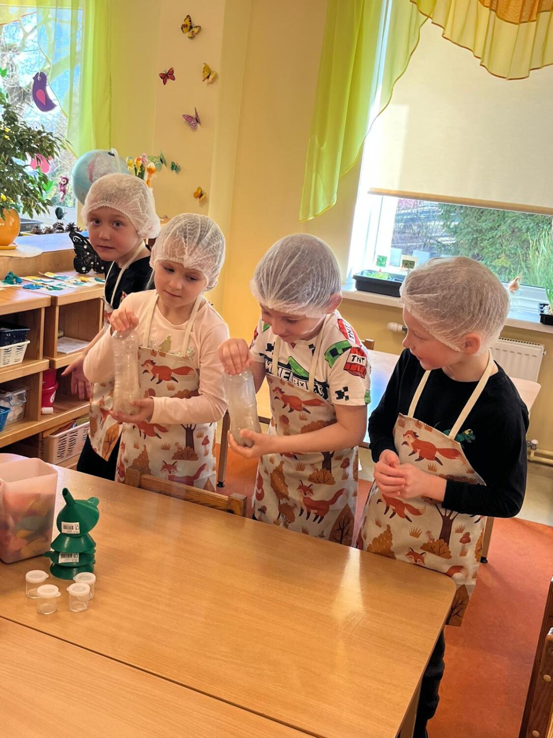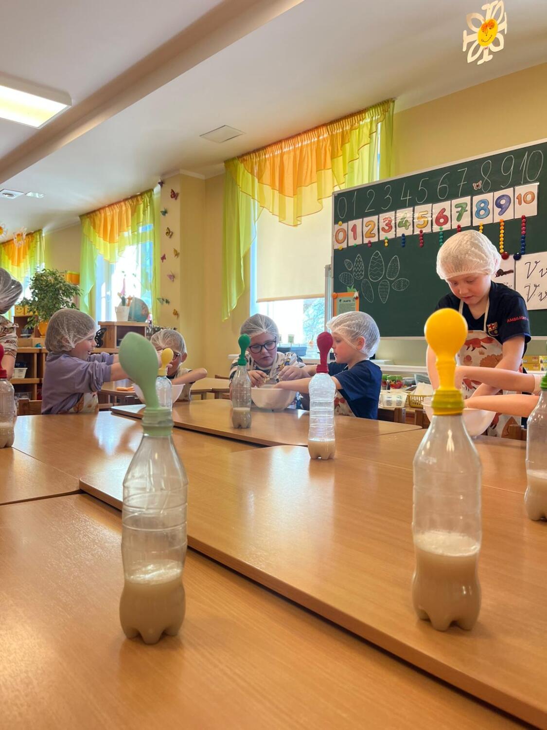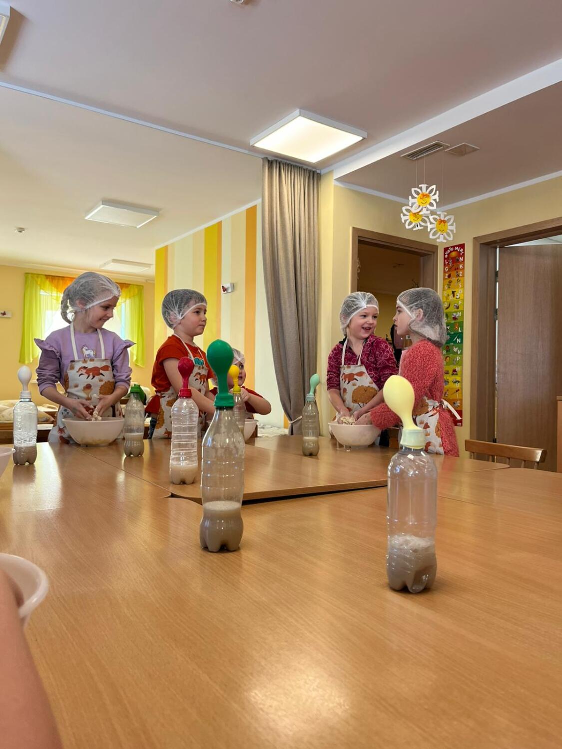 Nodarbības sākumā bērni uzvilka priekšautiņus un cepurītes, pēc tam, strādājot pāros, pudelēs raudzēja raugu un vēroja, kā balons pakāpeniski piepūšas. Tikmēr bērni mīcīja mīklu līdz pareizai konsistencei un aplūkoja attēlus par maizes cepšanu.