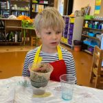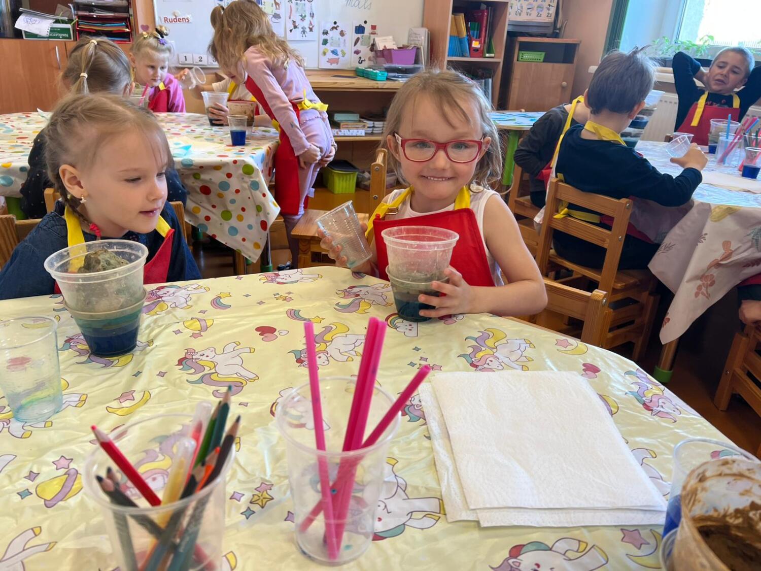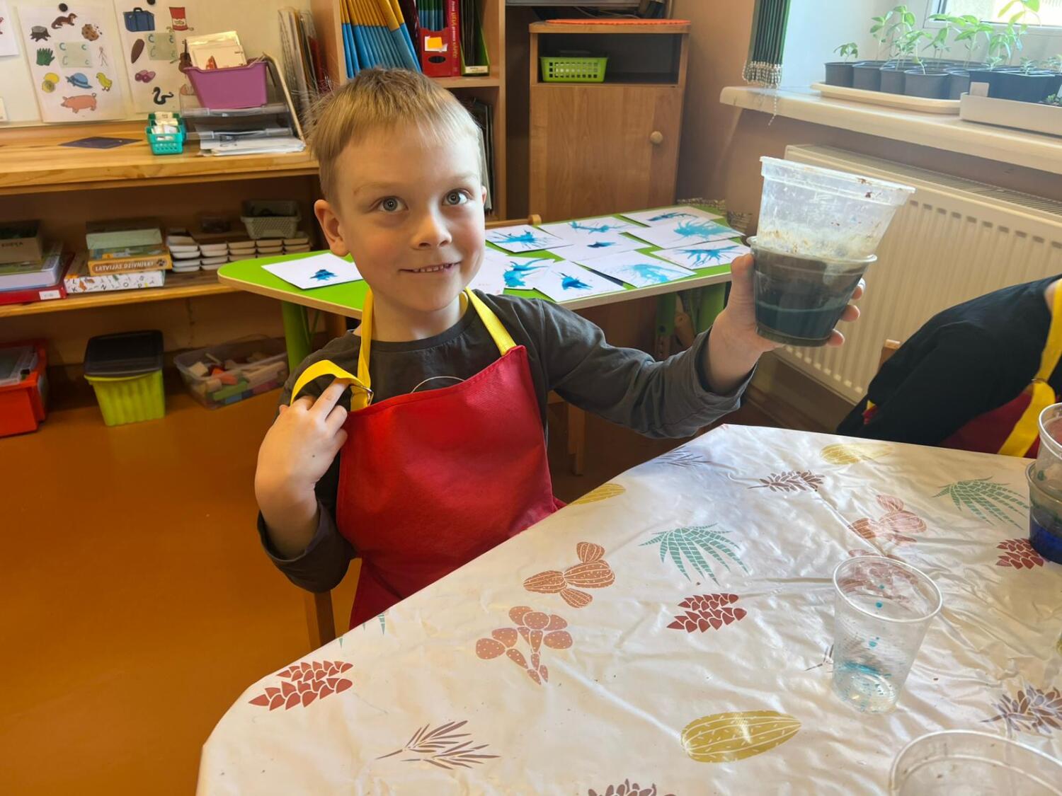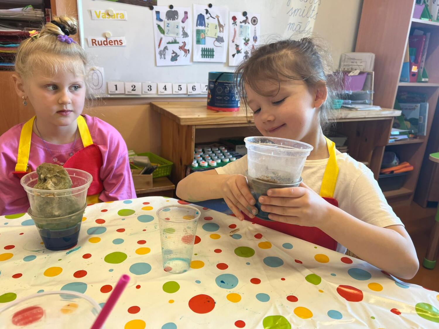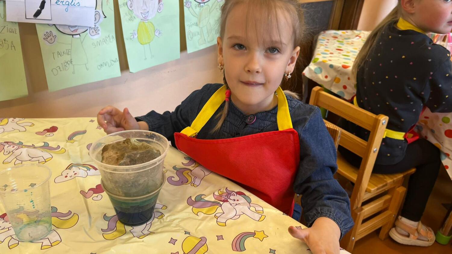 Bērni aktīvi darbojās, komunicēja ar skolotāju Sintiju Geidāni, stāstīja savus novērojumus. Nodarbībai izvirzītais rezultāts – novērojot, salīdzinot un eksperimentējot izzināt apkārtnē raksturīgo iežu un ūdens īpašības tika sasniegts draudzīgā un ļoti priecīgā atmosfērā.
