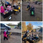 Oktobra mēneša tēmas “Krāsainais rudens” ietvaros vērojām, cik šogad krāsains rudens un īpašu noskaņu piešķīra pāri lidojošie gulbji. Filipa vecāki bija parūpējušies, lai šī diena mums visiem būtu aizraujoša un aktīva. Atgriežoties dārziņā visi kā viens teica, ka vislabāk esot patikusi aktivitāte ar traktoru.