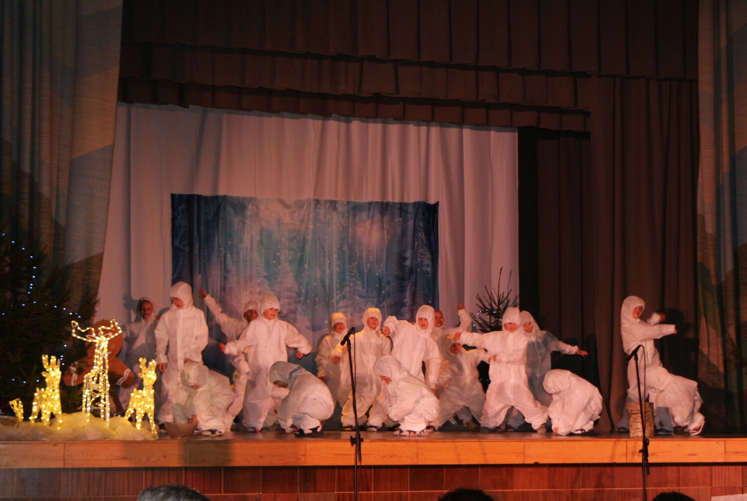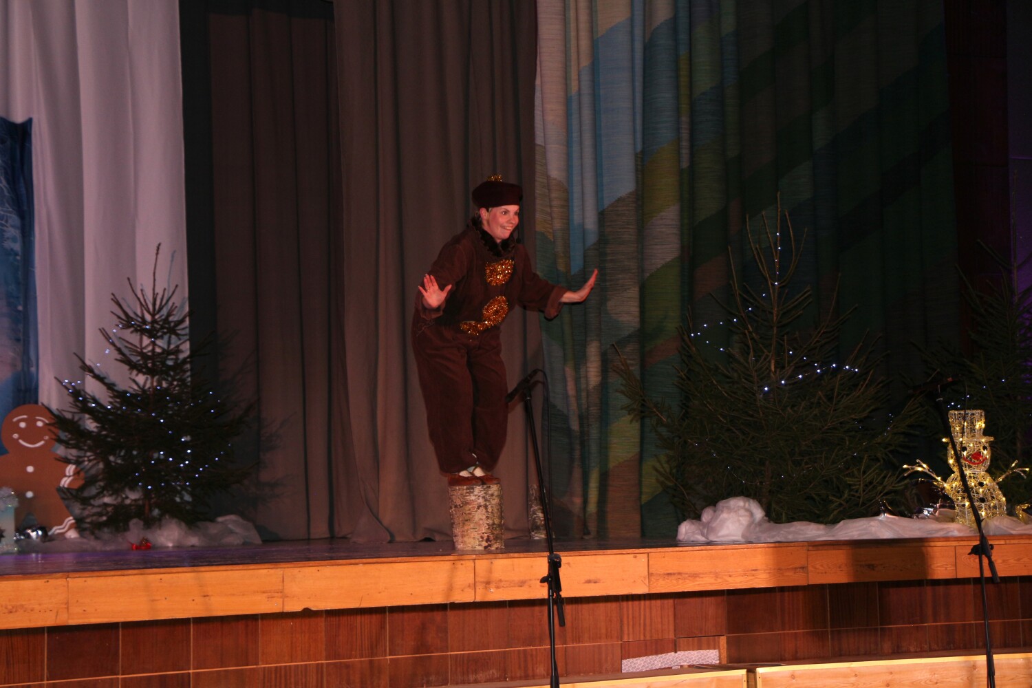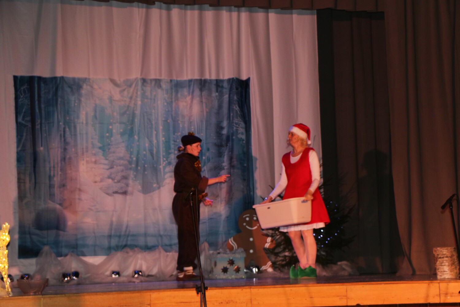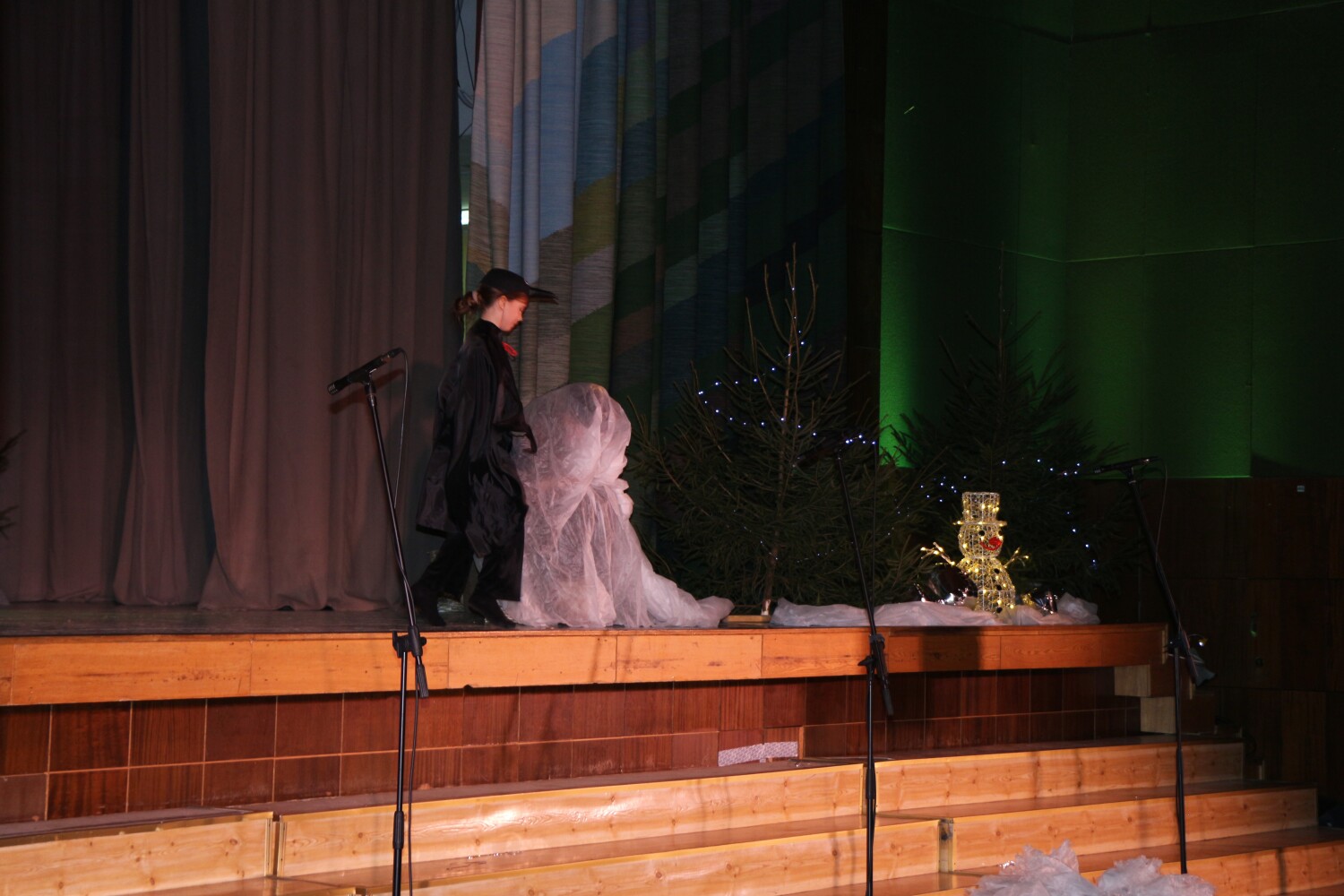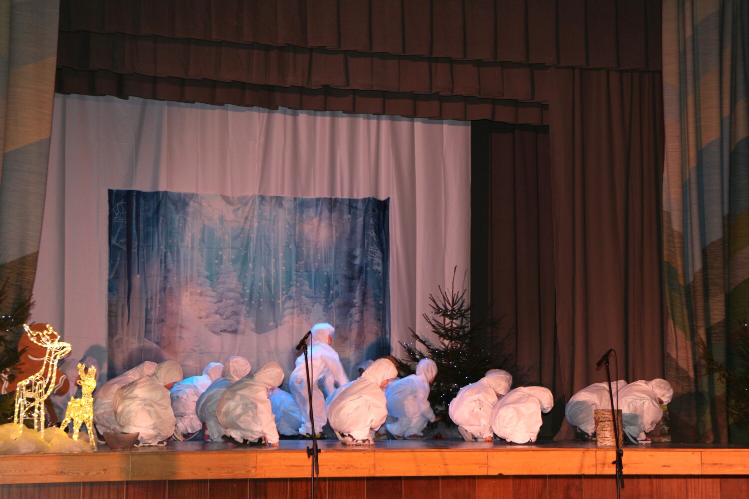 1.- 3. klašu Ziemassvētku stāsts savijās kopā ar Sniegbaltītes, Salatēta, viņa palīgu, Sniegbaltītes, mazā, ņiprā piparkūku vīriņa Kraukšķīša, rūķu, lapsiņu, sniegavīru, žagatas Žadzes, sunīša Vavja, gaiļa, vistu, trušu papa, Pēkšķenes, ņipro vāveru un daudzu jo daudzu viņu draugu piedzīvojumiem. Uzveduma dalībnieki rosināja būt atvērtiem mīlestībai, priekam un Ziemassvētku vēstij, ticēt brīnumumiem un palīdzēt tiem, kuriem kādā brīdī ceļš līdz svētku priekam šķiet neaizsniedzams.