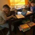 Lai nepārslogotu serveri, puikas uz lapas izrakstīja mācību stundas un uzdoto. Tiklīdz kādu darbiņu izpildīja, to priecīgi izsvītroja.