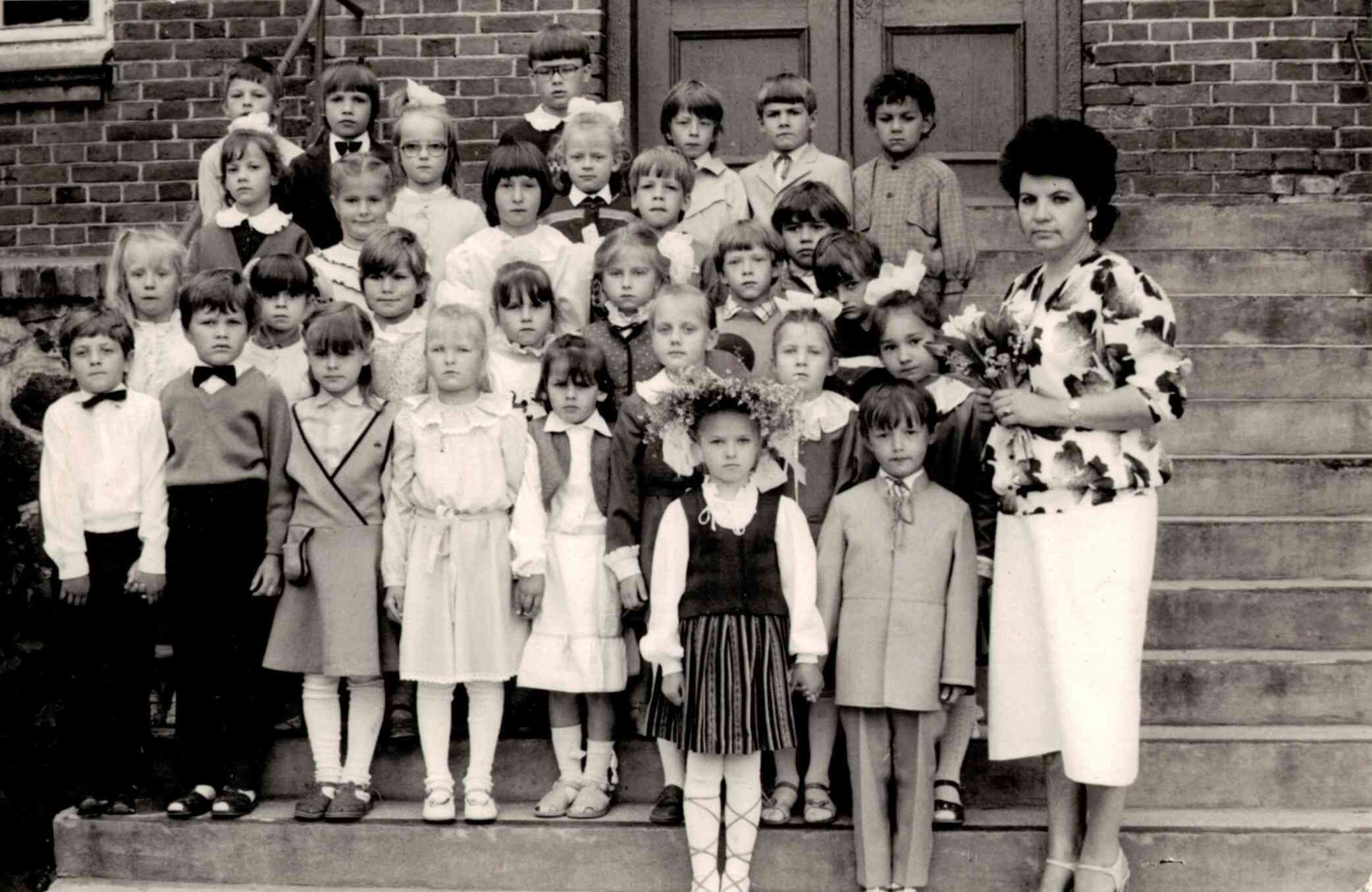 Fotogrāfijā redzama mana tēva klase 1. septembrī Smiltenes Centra vidusskolā. Visi ir svinīgā apģērbā- meitenēm-blūzes, kleitas, zēniem balti krekli un uzvalki. Skolēni jūt patīkamu satraukumu, domā, kāda būs mācīšanās, kādi būs jaunie draugi un kādas būs skolotājas.