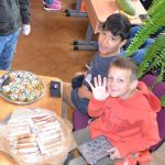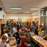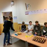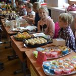Savukārt skolā, vizuālās mākslas stundās bērni gatavoja plakātus, kuros reklamēja savu preci.