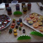 Tuvojoties 30.septembrim, bērnu mājās aizvien biežāk izskanēja: “Mammīt, tēti, cik vēl ilgi līdz Miķeļdienas tirgum? Piecas, četras dienas? Man vēl tik daudz jāpaspēj! Vecmāmiņ un vectētiņ, jūs palīdzēsiet?” – Un tālāk jau vien tikai katrā ģimenē zināms, kā pagāja turpmākās dienas, vakari un stundas… Kādam mazajam tirgotājam nāca talkā mamma, kādam tētis, lielā māsa vai brālis, vēl kādam – māsīca, brālēni vai krustvecāki… Un kopā tapa darbiņi, kuros ieguldīts daudz, daudz mīlestības!