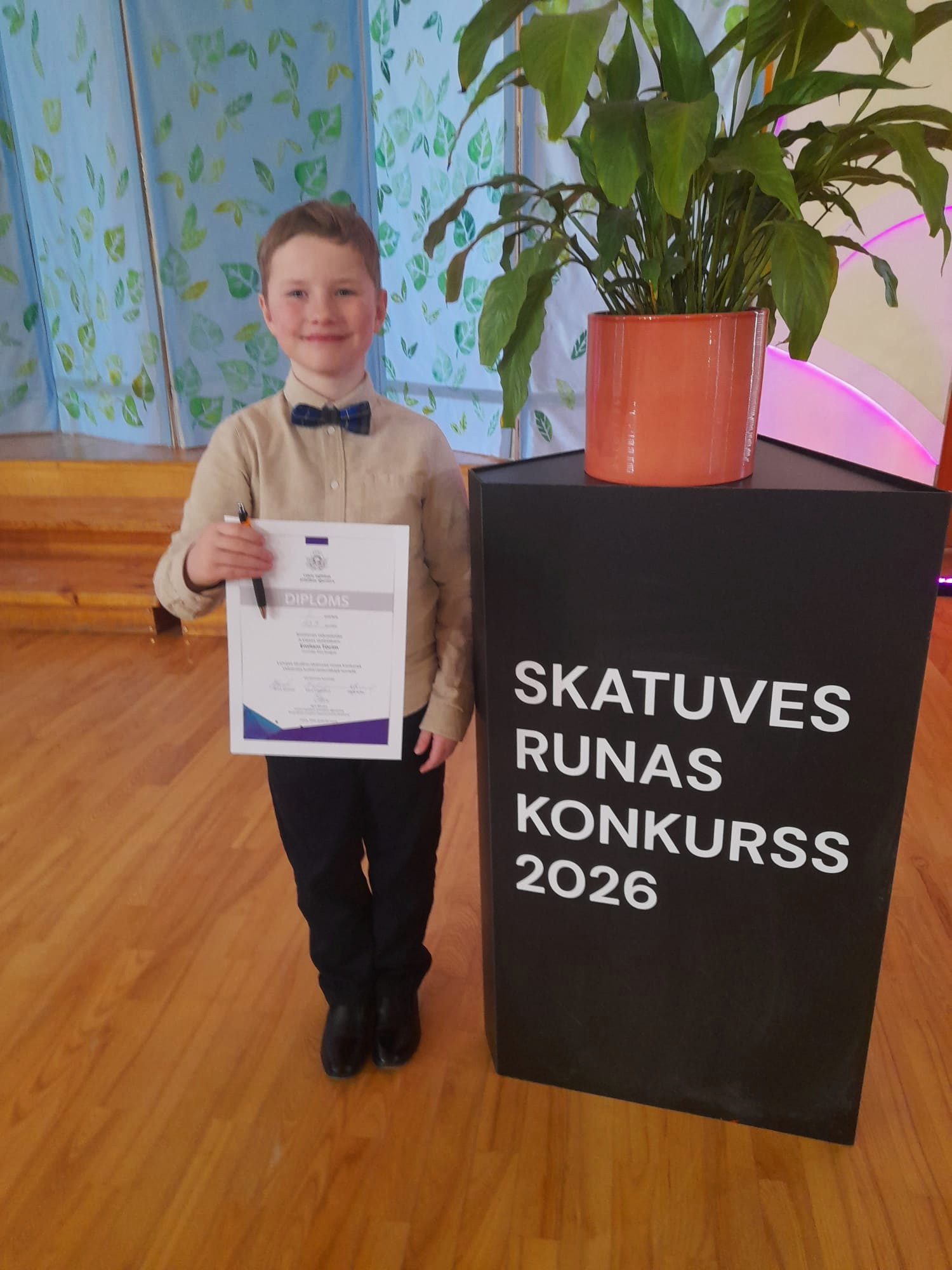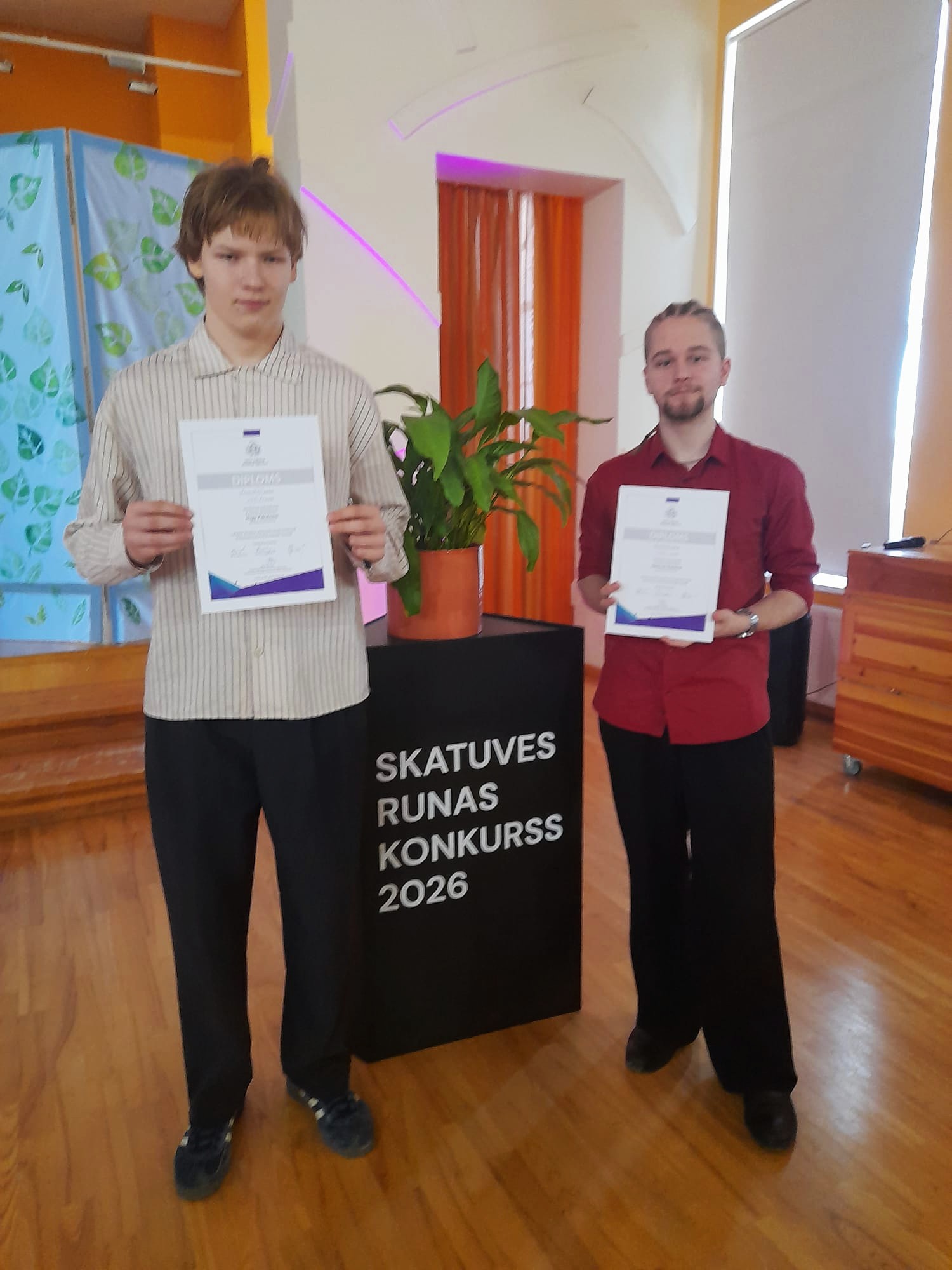 20.martā Smiltenes vidusskolas skolēni Emīls Tūcis (3. a), Hugo Pakalns (8.d) un Valters Kvelde (10.a) ar izciliem panākumiem pārstāvēja skolu “Skolēnu skatuves runas priekšnesumu konkursa 2026” Vidzemes kārtā, kas notika Cēsīs.