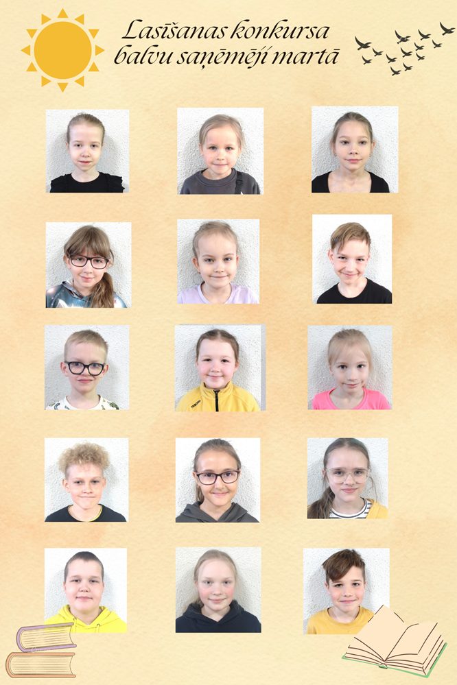 Balvas 1. klašu grupā saņēma Marta Veģere, Amēlija Adele Kudule, Rūta Bormane, Tomass Haks, Toms Purmalis. Atzinību par veiksmīgu dalību konkursā saņēma Līva Ozola, Reinis Jansons, Dārta Dukule, Marsels Maks un Ričards Sprancmanis.