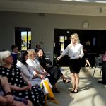 Smiltenes vidusskolas īpašā reisa pasažierus sveica lidmašīnas galvenā pilote – direktore Inguna Kondratjeva.