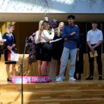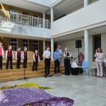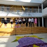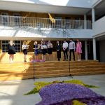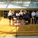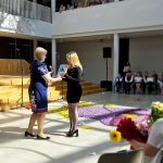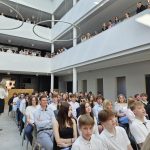 Pirmoreiz skolas lielajā zālē skan arī skolotājas Evas Uldriķes sacerētā dziesma ar Smiltenes vidusskolas latviešu valodas skolotājas Regīnas Melzobas vārdiem “Tā, lūk, skolā virmo gaiss…”