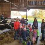 Bērni šim braucienam gatavojās ļoti – kā pateicību par uzņemšanu bija uztaisījuši lielu plakātu, uz kura attēlota gotiņa ar bērnu plaukstu nospiedumiem. “Kalējiņos- 1” mēs izzinājām lauksaimnieka profesiju – ko lauksaimnieks dara. Visapkārt bija daudz, daudz skaistu, mazu un lielu gotiņu. Bērni redzēja, ko gotiņas ēd, kā tiek izslauktas un bija pat iespēja aplūkot, kā gotiņai tiek veikta masāža. Visapkārt vērojama dažāda tehnika. Bērnos bija redzamas gan satraukuma, gan prieka emocijas, jo lielākā grupiņas daļa pirmoreiz brauca ar autobusu.