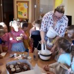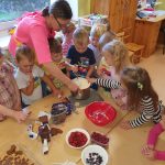 Pirmsskolas grupā “Taurenīši” ciemojās konditore Evija Ērmane Timermane. Bērni ar interesi klausījās stāstījumu par konditora profesiju. Visi ar aizrautību vēroja, kā gatavo krēmu keksiņu garnēšanai. Un tad sekoja pats interesantākais process – katrs bērns iesaistījās sava keksiņa garnēšanā. Bērni darbojās kā īsti konditori un priecājās par savu izrotāto keksu.