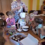Otrdienas rīts “Bitīšu” grupā iesākās ar dziesmu – “Mēs mazie, mazie pavāri!” Ciemos bija atnākusi konditore Laila Tiltiņa, kura bērniem pastāstīja, ko dara konditors, ko viņš gatavo. Un kopā ar bērniem tika gatavota vienkāršā biezpienkūka ar cepumiem un marmelādi, bērni paši darbojās – mikserēja putukrējumu, blenderēja biezpienu, cepumus izklāja uz pamatnes, maisīja masu un vēl paspēja visu pagaršot. Pēc kūkas pagatavošanas bērni no smilšu mīklas gatavoja mazas, mazas bumbiņas – lai taptu brūnganie un gardie riekstiņi. Bērnos bija redzams liels gandarījums par paveikto.