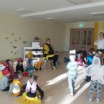Katrs grupiņas bērns pārtapa par mazu kukainīti. Visi kopā devās modināt bitīti Hertu no ciešā ziemas miega, jo ir pavasaris un bitīte var nogulēt savu vārda dienu.