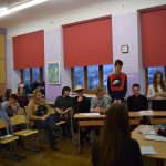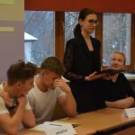 10.b un 10.a klases skolēniem Prospēra noveļu pasaulē iejusties palīdzēja Smiltenes vidusskolas latviešu valodas un literatūras skolotāja, direktores vietniece izglītības jomā Valda Cirīte. Literārā tiesa vienlaikus bija atklātā stunda, kurā piedalījās arī skolas izglītības metodiķe Inga Deigele.