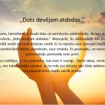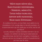 Latvija – tie esam mēs paši, tā ir mūsu skaistā daba, latvju raksti un tautas garīgais mantojums – mūsu saknes, spēka avotiņš, kas dod spēku augt un kuplot jaunajām liepiņām un ozoliņiem…