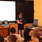 Vispirms bērni klātesošos iepazīstināja ar izlasītajām grāmatām, bet pēc tam sekoja atraktīvākā daļa – “Lasīšanas bingo”. Mācību stunda paskrēja nemanot un telpā virmoja nepārprotama mazuma “piegarša”. Vērīgākajiem dalībniekiem par prieku semināra norisei aktīvi līdzi sekoja arī vārna no koka zara iepretī klases logam.