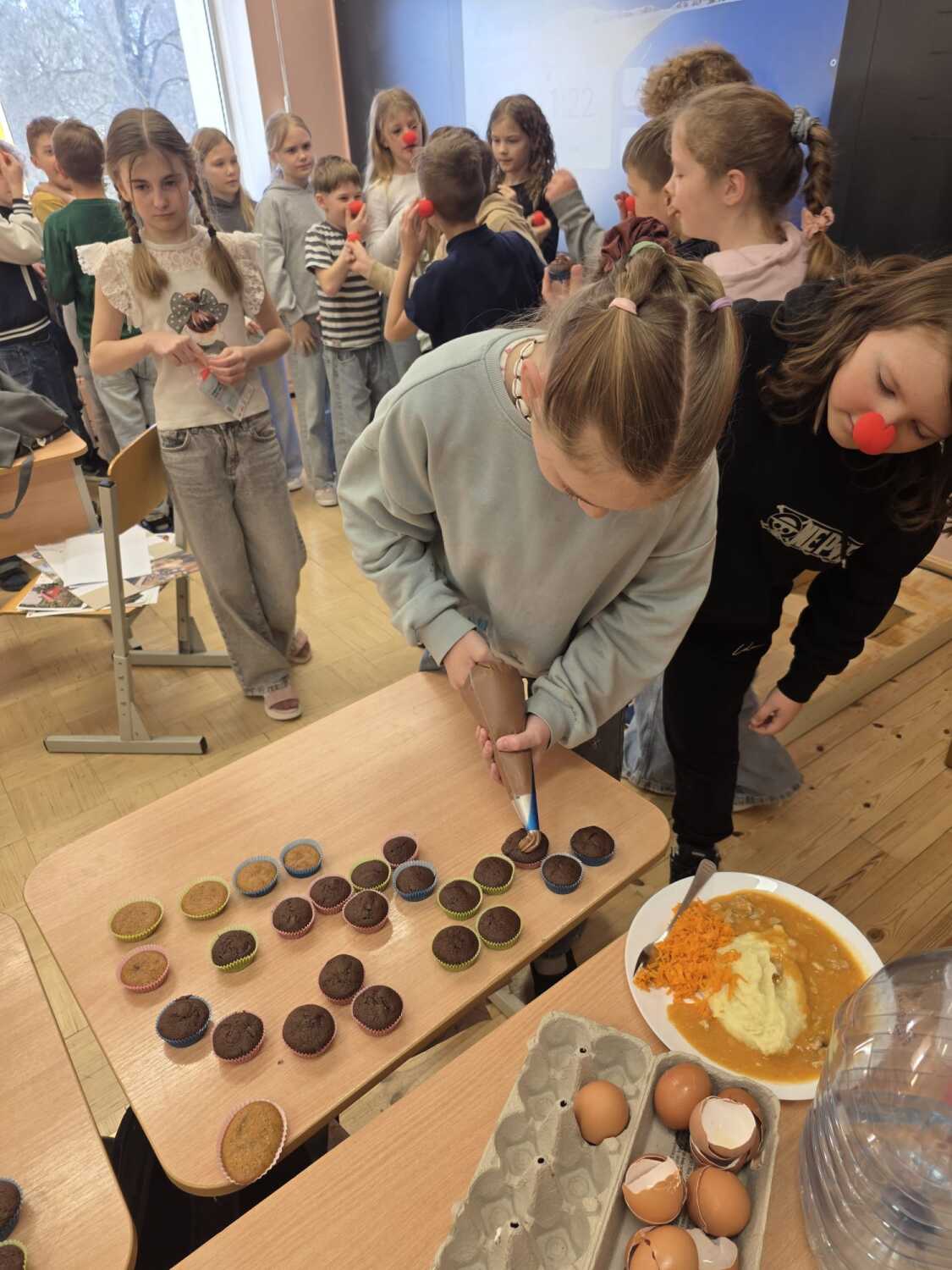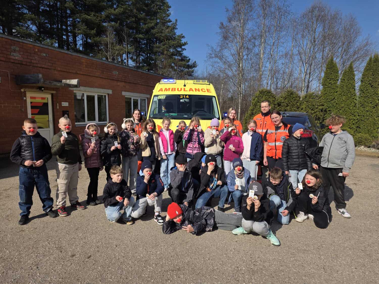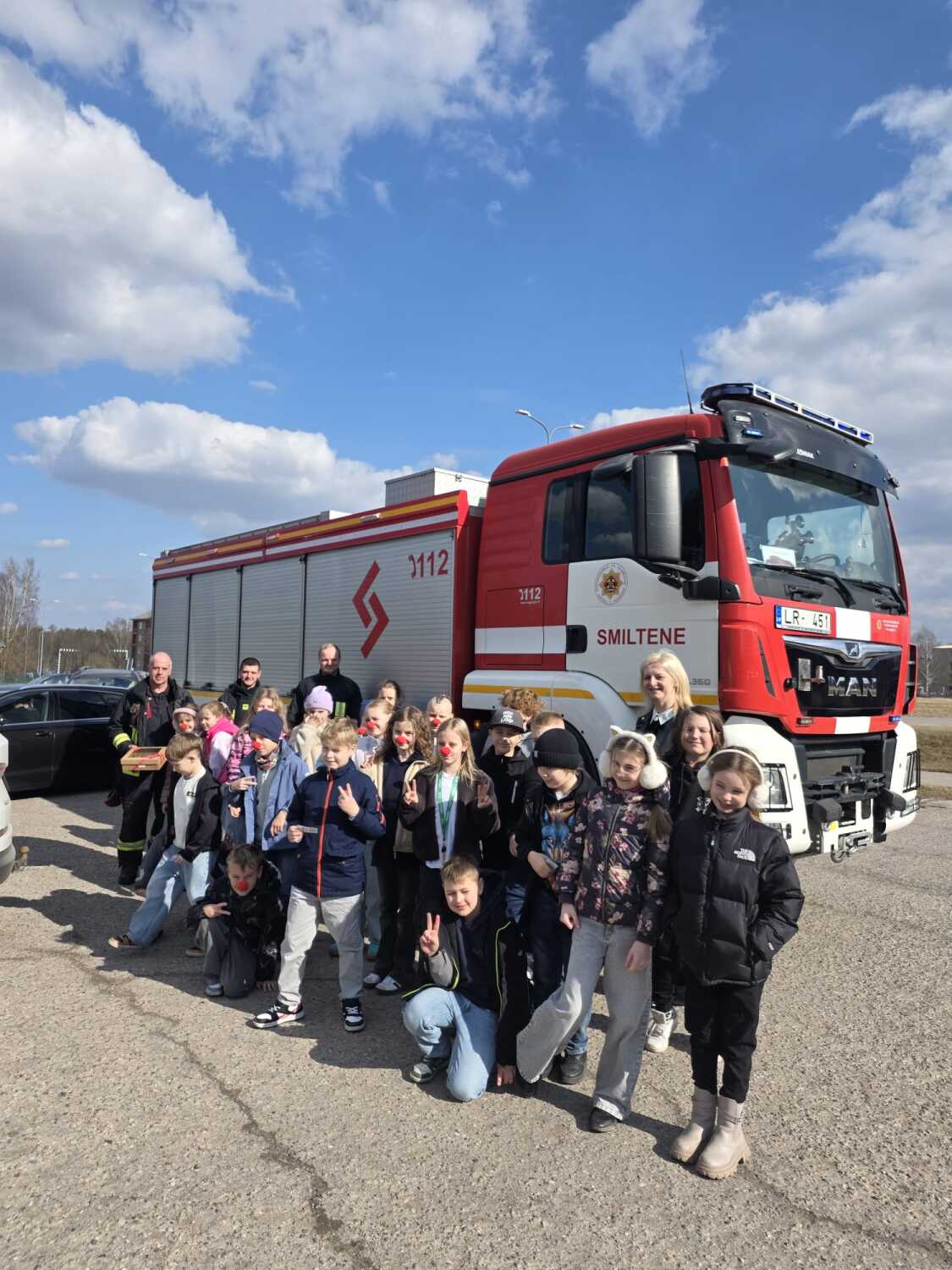 Bērni, atbalstot labdarības akciju “Palīdzi Dakterim Klaunam būt tur, kur viņu gaida,” veikalā “Rimi” iegādājās klauna degunus, skolā sacepa kēksiņus un pateica paldies par rūpēm vietējiem neatliekamās palīdzības mediķiem, ugunsdzēsējiem un pašvaldības policijas darbiniekiem.