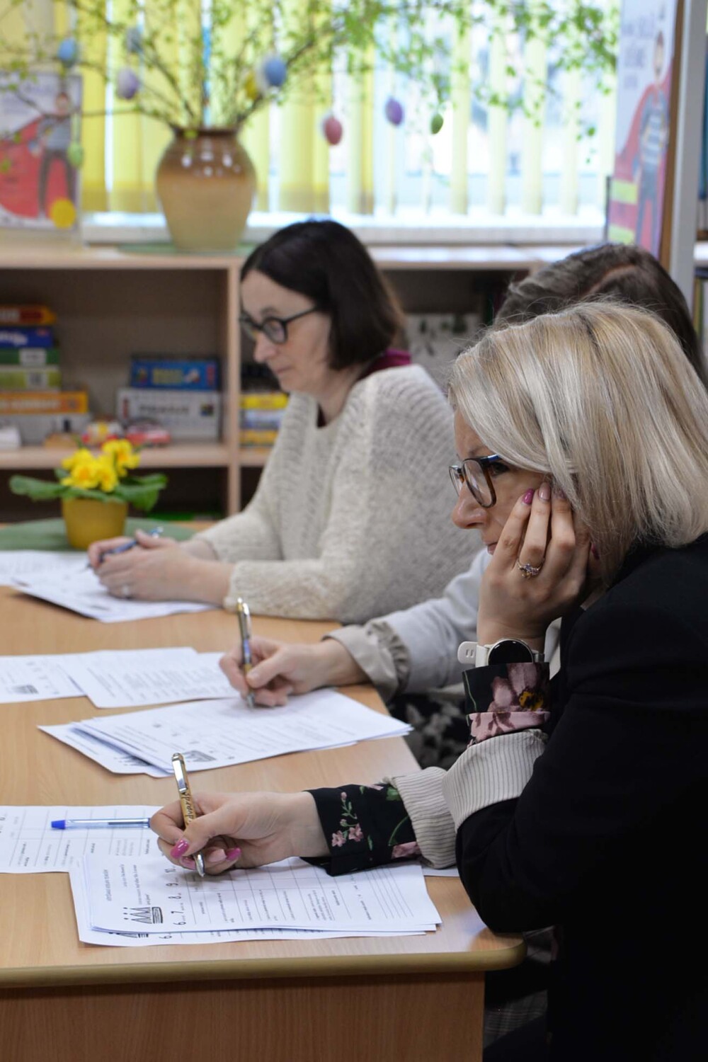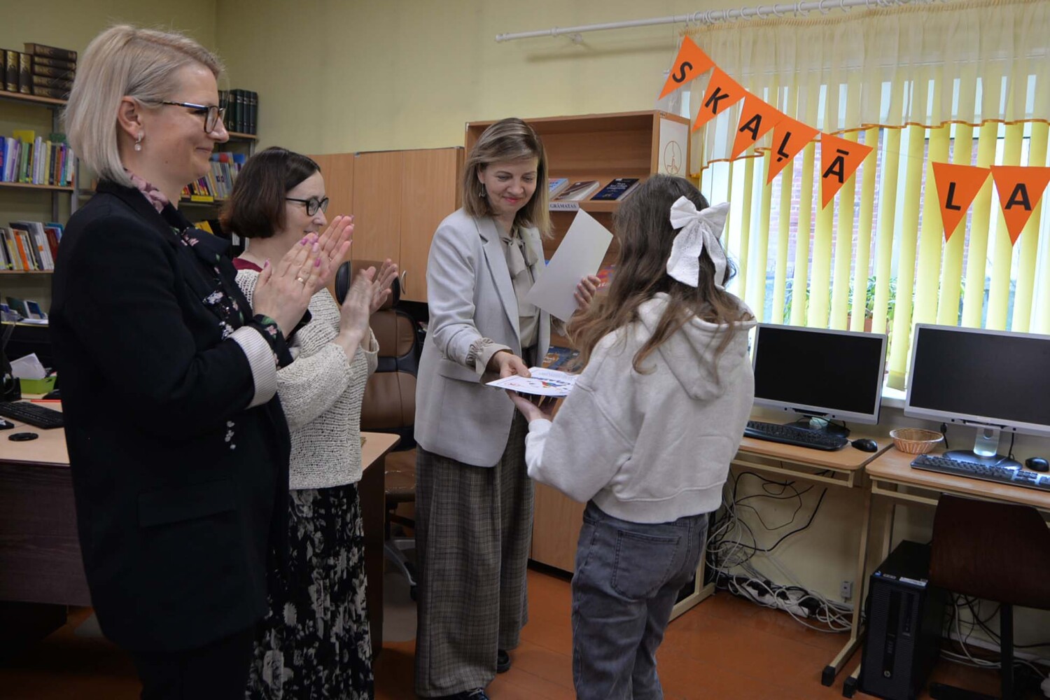 Sacensību dalībnieku sniegumu vērtēja: Smiltenes vidusskolas bibliotēkas vadītāja Inguna Kudlāne, direktores vietniece Simona Zariņa un Baiba Vahere.