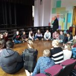 No 1. līdz 08.aprīlim mūsu skolas jaunieši uzņēma savās mājās 24 jauniešus no Lise Meitner ģimnāzijas Vācijas pilsētā Willich. Projekta tēma šajā gadā bija “Ebreji Smiltenē un Willich”. Pirmajā dienā pēc direktores apsveikuma un iepazīšanās spēlēm prezentējām savus mājas darbus par šo tēmu, kā arī centāmies saprast mūsu tautu kopīgās pagātnes drūmos notikumus ar domu, ka nekad vairs nekas tamlīdzīgs nedrīkst atkārtoties. Pēc tam apmeklējām ebreju kapus, vietas, kuras saistītas ar ebreju dzīvi un traģiskajiem notikumiem Smiltenē. Apmeklējām arī Rīgas Geto un Holokausta muzeju.