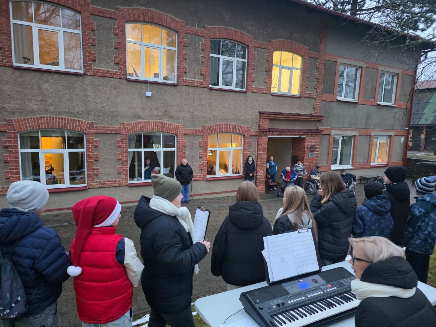 Tuvojas Ziemassvētki, kuru dziļākā vēsts rosina pateicībā par mums dāvātajām svētībām dalīties mīlestībā un vairot pasaulē labestību un prieku. Šodien Smiltenes vidusskolas 4. klašu skolēni kopā ar direktores vietnieci Simonu Zariņu, skolotājām Ilvu Dūmiņu un Solvitu Possi uzdāvināja muzikālu pārsteigumu Sarkanā Krusta Smiltenes slimnīcas Ilgstošās sociālās aprūpes un rehabilitācijas pacientiem.