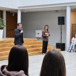“Esiet mīļi sveicināti Smiltenes vidusskolā,” Atvērto durvju dienas dalībniekus uzrunāja Smiltenes vidusskolas direktore Inguna Kondratjeva. “Smiltenes vidusskolā izglītību iegūst 1058 skolēni, t.sk. pirmsskolas audzēkņi. Un ikviena skolas laiks ir tik interesants, cik viņš pats gatavs par to parūpēties. Šeit ir zinoši un atsaucīgi skolotāji, daudz zinātkāru un aktīvu skolēnu, kas gatavi dažādiem izaicinājumiem. Tāpēc aicinu jūs visus nākt mūsu pulkā! Trīs būtiskākie izglītības posmi man raisa asociācijas ar sporta sacensībām. Pamatskola ir kā pirmais pakāpiens jeb trešā vieta. Vidusskola – otrais pakāpiens jeb sudrabs, bet augstsskola – pirmais, augstākais pakāpiens jeb zelts. Dzīvē, tāpat kā sporta sacensībās, panākumi ir tad, kad trenējamies, esam neatlaidīgi, mērķtiecīgi un gatavi pieņemt dažādus izaicinājumus. Baudiet šo dienu un uz tikšanos septembrī!”