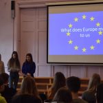 Pirmajā satikšanās dienā – iepazīšanās pasākumā notika viktorīna par Eiropu. Skolēni viens otram rādīja prezentācijas “Kas ir Eiropa mums?” Jaunieši iepazinās ar Smiltenes vidusskolas tuvāko apkārtni un no dabā atrastajiem olīšiem, ziediņiem, zariņiem un citiem dabas materiāliem veidoja pavasarīgas mandalas.