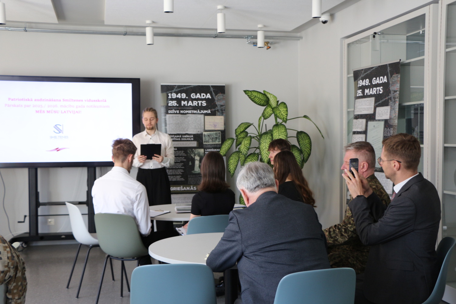 1.aprīlī Smiltenes vidusskolā viesojās Cēsu pulka Skolnieku rotas ceļojošā karoga komisija.