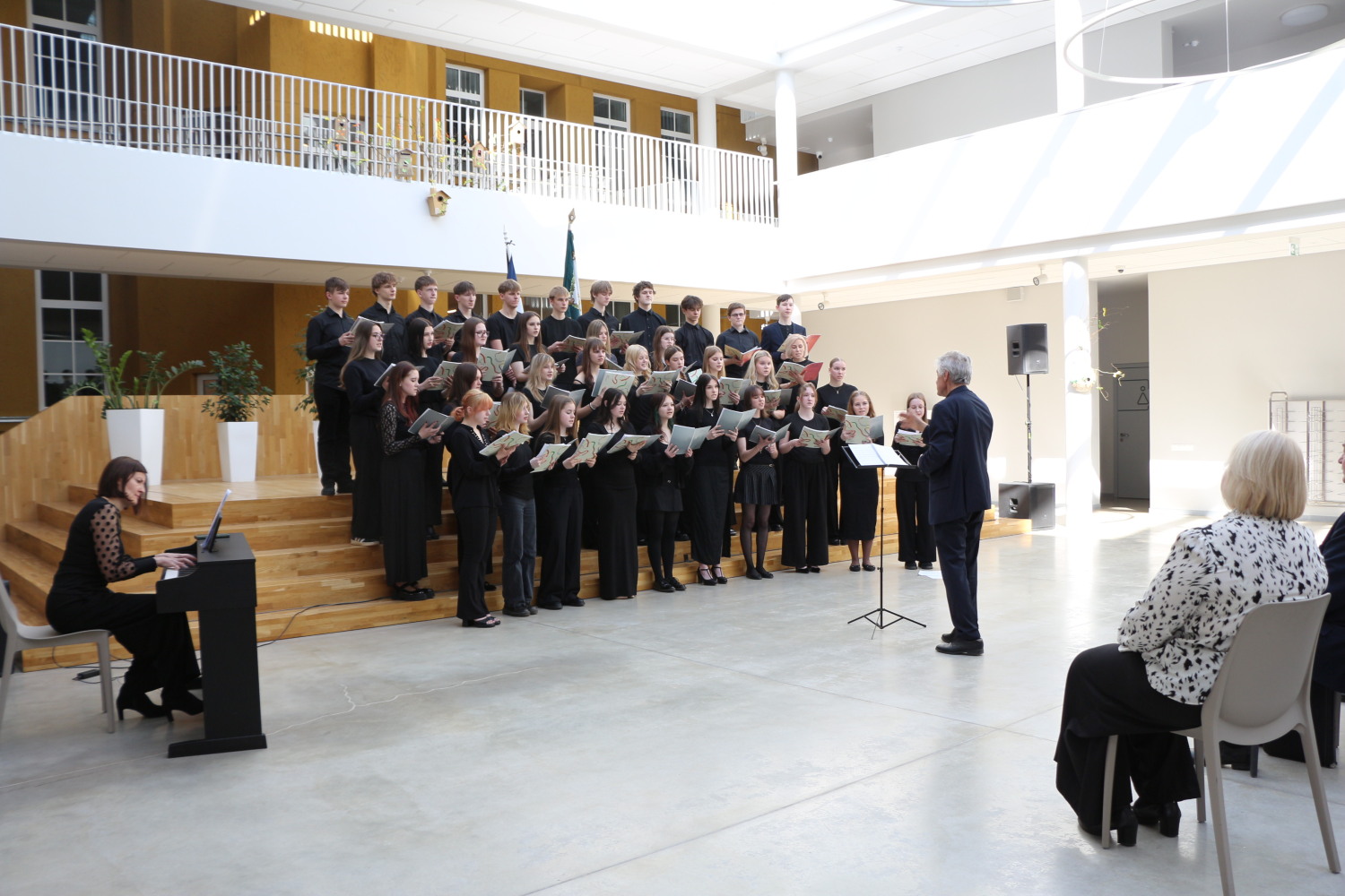 Augstos viesus ar muzikālu sveicienu patriotiskās noskaņās sumināja Smiltenes vidusskolas lepnums – jauniešu koris “Lido” (diriģents Imants Točs, koncertmeistare Inga Strazdiņa).
