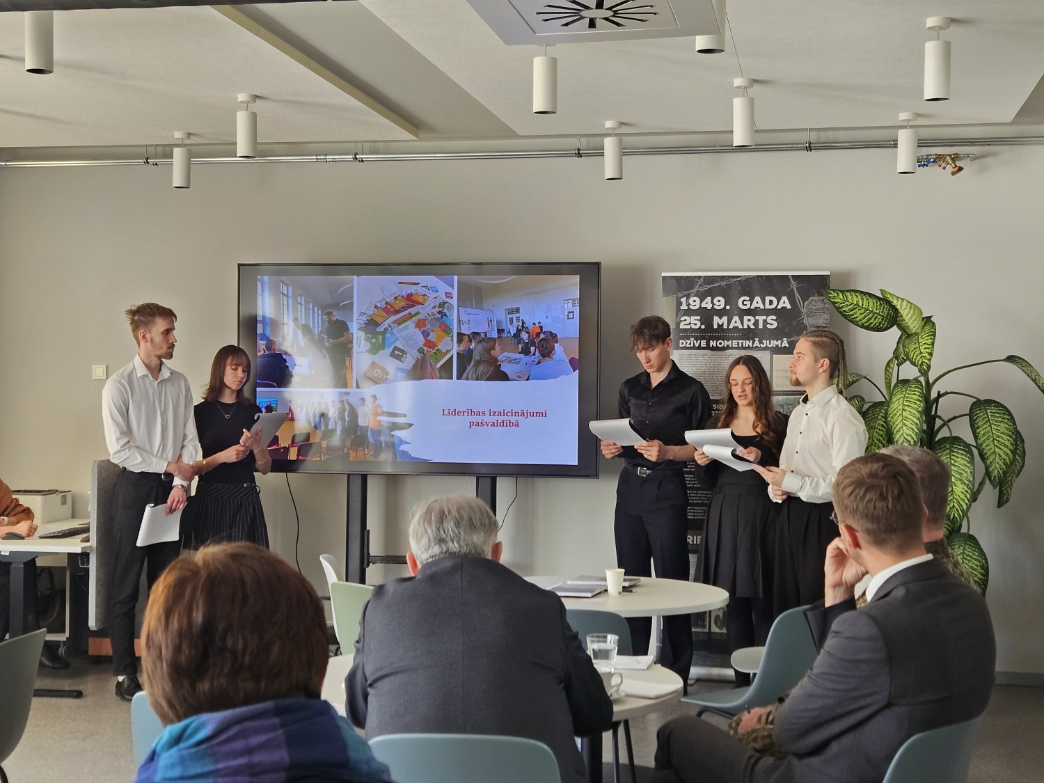 Jaunieši sniedza ieskatu patriotiskajā audzināšanā, atskatījās uz 2025./2026. mācību gada pasākumiem un aktivitātēm, kas stiprinājušas Cēsu pulka Skolnieku rotas karoga tradīciju un vietējo kopienu, kultūras un nacionālo identitāti , kā arī – veicinājušas izaugsmi un pilsonisko līdzdalību.