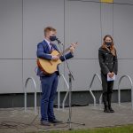 Smiltenes vidusskolas jauniešu pašpārvaldes prezidents Kārlis Sīmanis prezidentam bija sagatavojos arī muzikālo sveicienu – mūsu novadnieka Jāņa Krūmiņa dziesmu “Kauja par neko”, kas tapusi pēc filmas “Dvēseļu putenis” noskatīšanās. “Manuprāt, šajā dziesmā ietvertais vēstījums ir īpaši aktuāls šobrīd. Karš, lai kāds tas arī būtu, nav risinājums, kas palīdzēs ienest pasaulē pozitīvas pārmaiņas.”