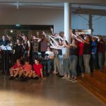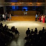 Jaunieši, iedvesmu smeļoties Imanta Ziedoņa Dzintarainajā pasakā, kopā ar režisorēm Ivetu Krūmiņu un Gitu Skadiņu bija radījuši savu īpašo pasaku skolotājiem, kuri kā, teica paši skolēni, “noslīpēti, spīdīgi un mirdzoši dzintari viņus lolojuši visus skolas gadus, lai jau pavisam drīz palaistu plašajā pasaulē.