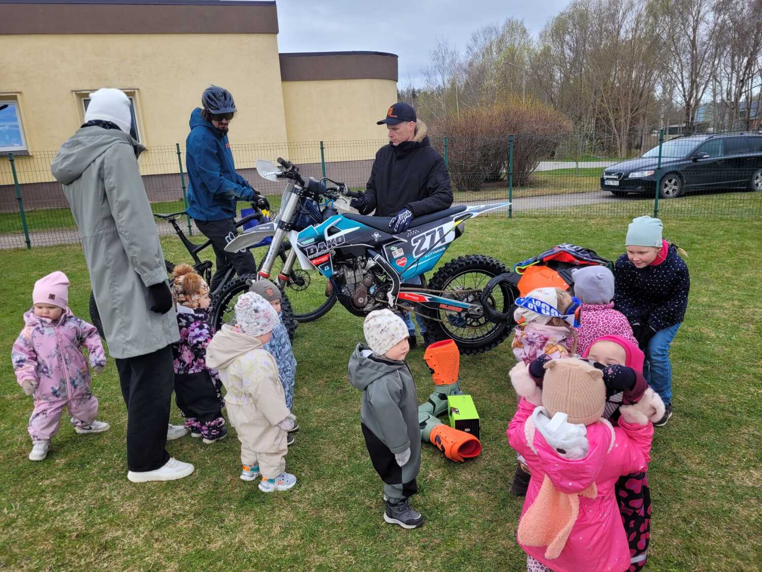 Turpmākās aktivitātes bērniem organizēja mūsu sporta skolotājs Renārs Auga. Viņa aicinājumam bērniem pastāstīt un parādīt savu sporta veidu atsaucās mūsu grupas “Taurenīši” audzēknes Gabrielas Ļitviņčikas tētis Edgars, kurš nodarbojas ar motokrosu. Dažādus trikus ar savu kalnu divriteni  rādīja un par nobraucieniem no kalna stāstīja Reinis Lācis, bet par alpīnisma stundu esam pateicīgi Ievai Kalkai.