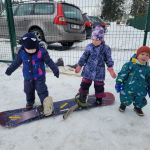 Savukārt grupas “Burtiņi” skolotāja Arnita Freiberga atzīst, ka: “Bērni bija priecīgi par skolotāja Renāra stāstījumu par sporta veidiem, kuros piedalās dzīvnieki – suņi, zirgi un kamieļi. Ļoti patika veidot sirdi no aukliņām sniegā un apgulties, lai sajustu sniegu. Interesanti bija iekāpt lielajos slēpju zābakos un nostāties uz slēpēm. Lielāko prieku sagādāja tas, ka visi 13 audzēkņi kopīgi varēja plastmasas pannā pa sniegu izvizināt auklīti Sintiju! Jā, sporta diena svaigā gaisā ienesa daudz prieka un veselības Burtiņu ikdienā!”